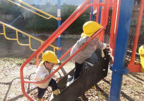 手すりを持ってしっかり登ることも上手になってきました。