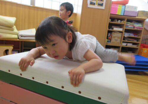 先日はとび箱をお山に見立てた運動遊びをしました。