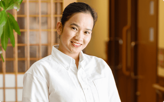 Having an employee dormitory and living close to the workplace is great. Even when I work late shifts until late at night, I feel safe returning home alone because it’s nearby. Additionally, Sun Vision’s work system is team-based, allowing us to collaborate with other staff and reduce work fatigue. Although I’m still not fluent in Japanese, I can ask for help from other staff when I face difficulties, so being able to work as a team is a great aspect.