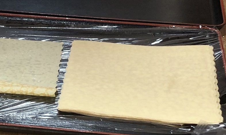 このお菓子の生地も米粉を使っていて、小麦粉のクレープとはまた違った食感の様お菓子です。