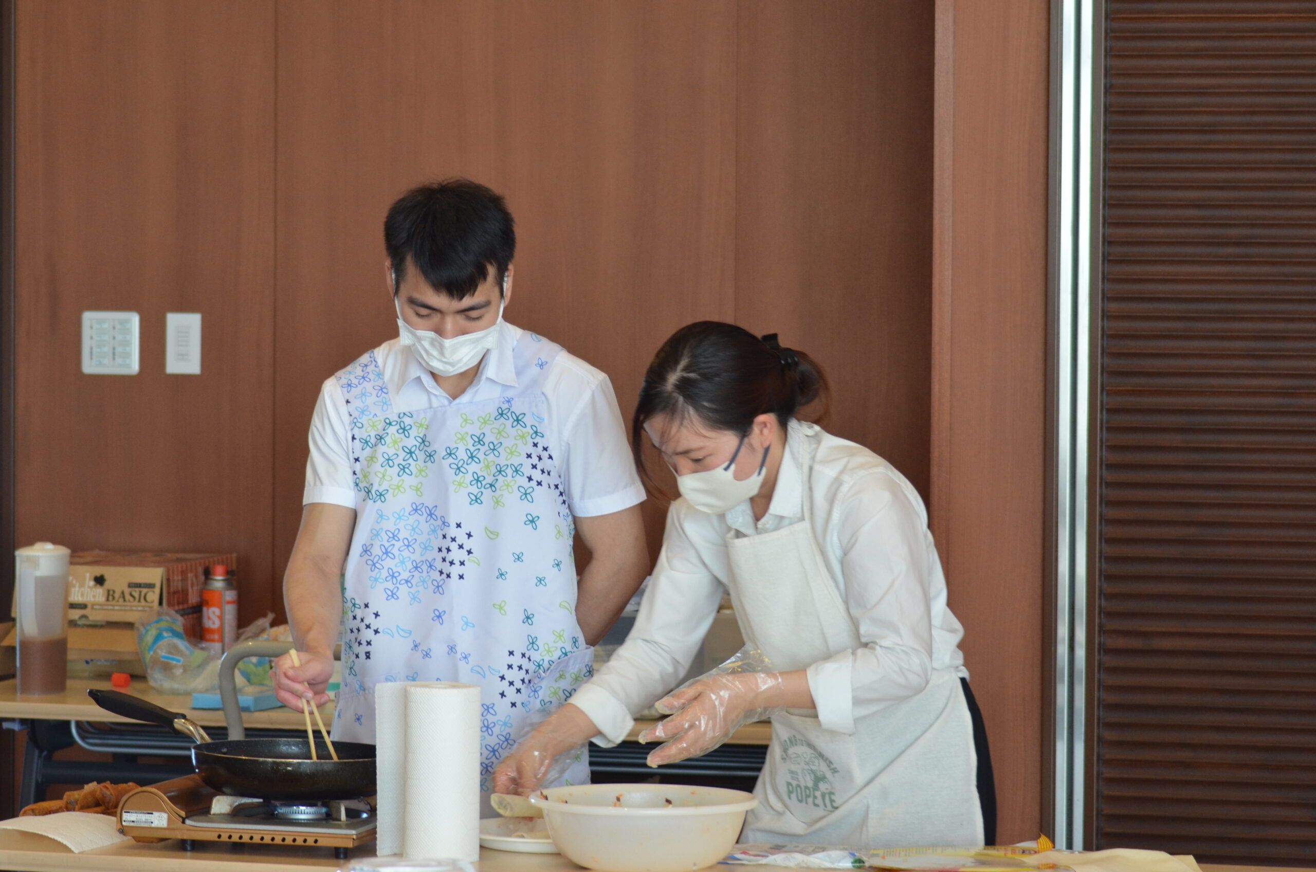 実は、ベトナム国籍の職員さんが日本の職員さんに向けて食事を通じた交流会を企画し、ベトナム料理を作っているところです!