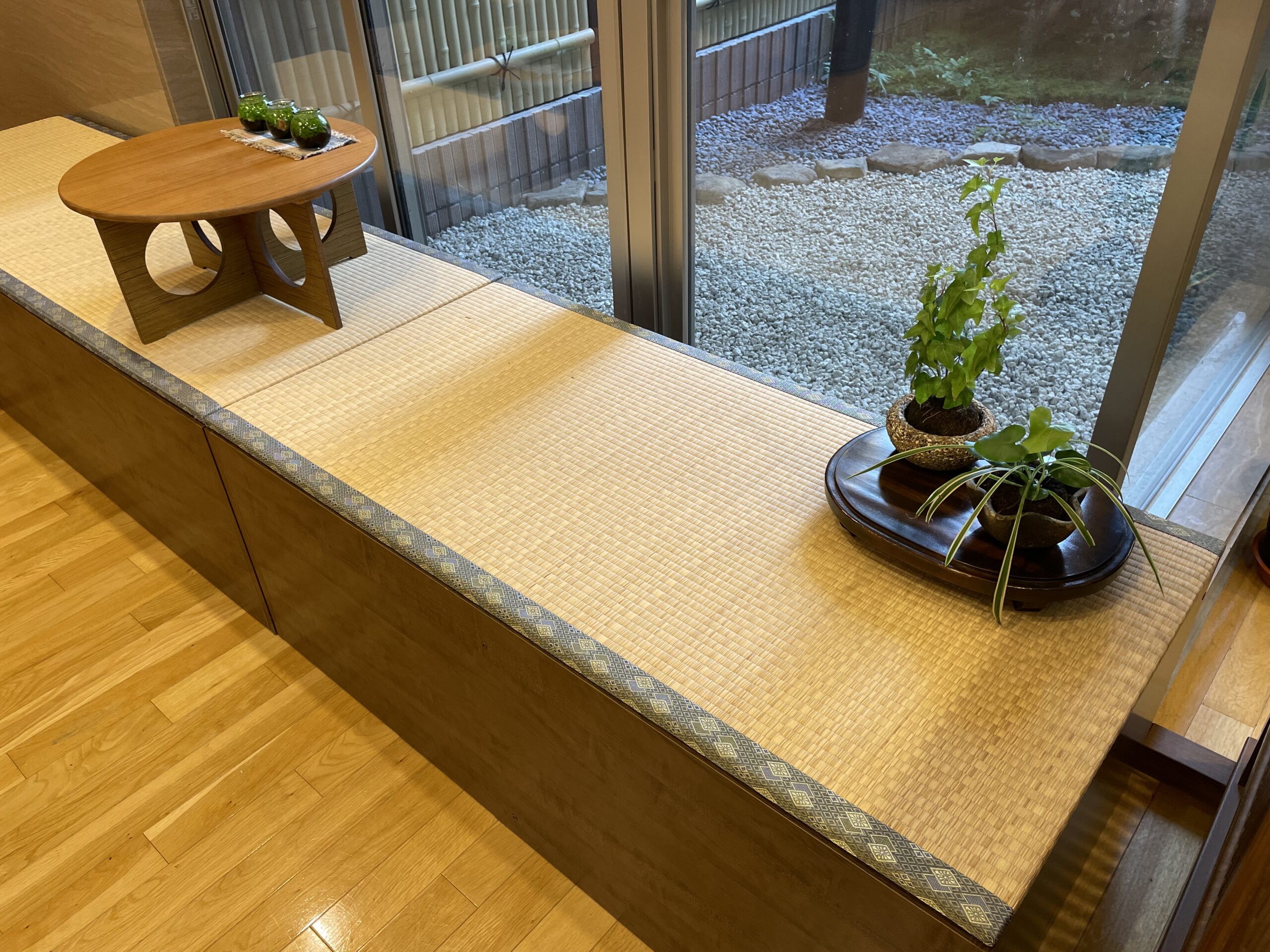 木曽では今月より玄関入ってすぐの所に休憩ができるスペースを設けさせていただきました!今まではただの通路の空きスペースでしたが、座って休める畳の設置や机を配置させていただいております。ご利用者様がちょっとした散歩の際やご面会で来られたご家族、職員が休憩できるスペースとして使用可能となりました!