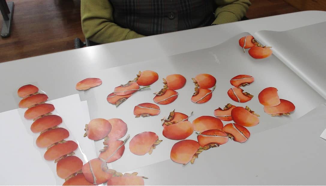 柿の絵を大量に用意し、それを思い思いに連ねていきます。ここが利用者様の腕の見せどころ!脳の活性化が期待できます。