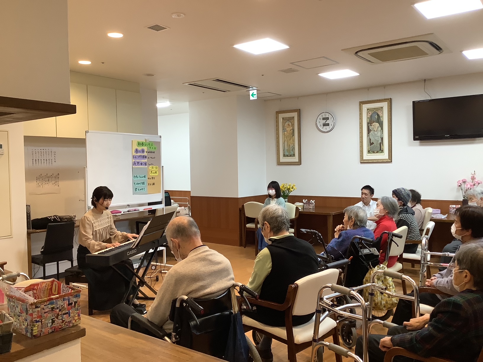 ただ聴くだけでなく、利用者様と一緒に歌えるような曲も演奏して下さり、大変盛り上がりました。