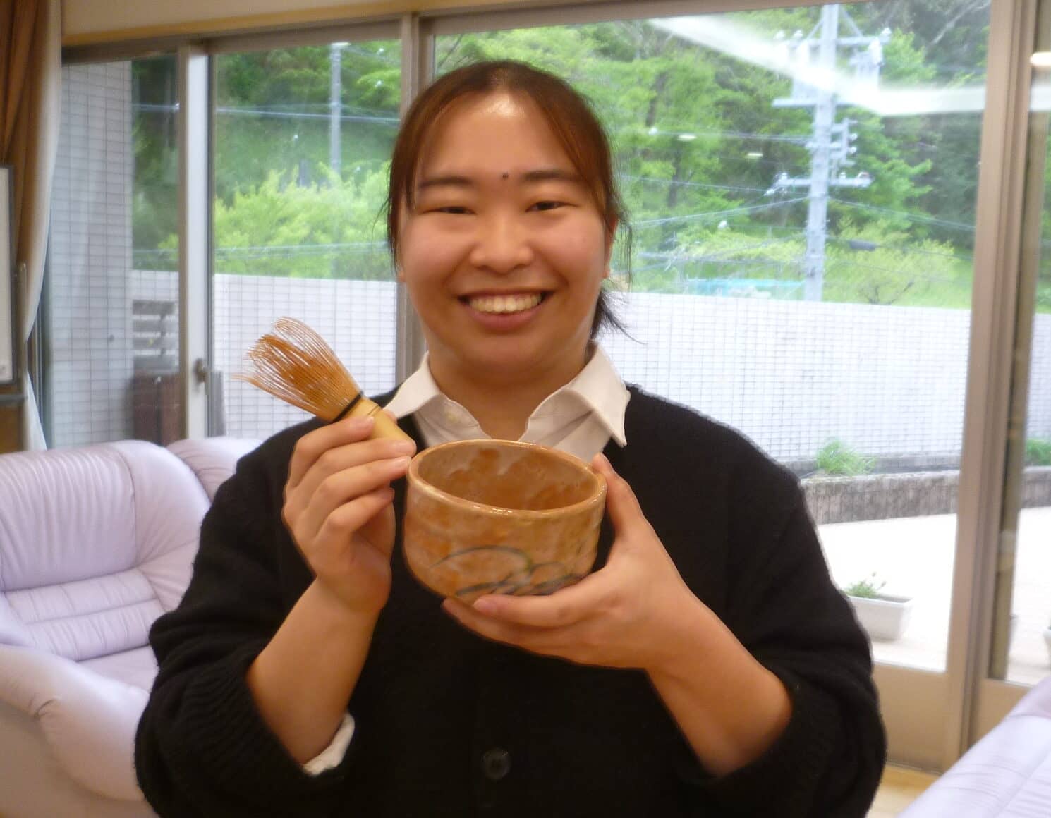 学生時代に培った茶道を生かし、利用者様にお茶をたてました!5月のこいのぼりの練り切りをお供に、利用者様に喜んでもらえて、とても楽しい思い出です。利用者様アンケートにも「楽しみにしている」とのお言葉をいただき、うれしく思います。