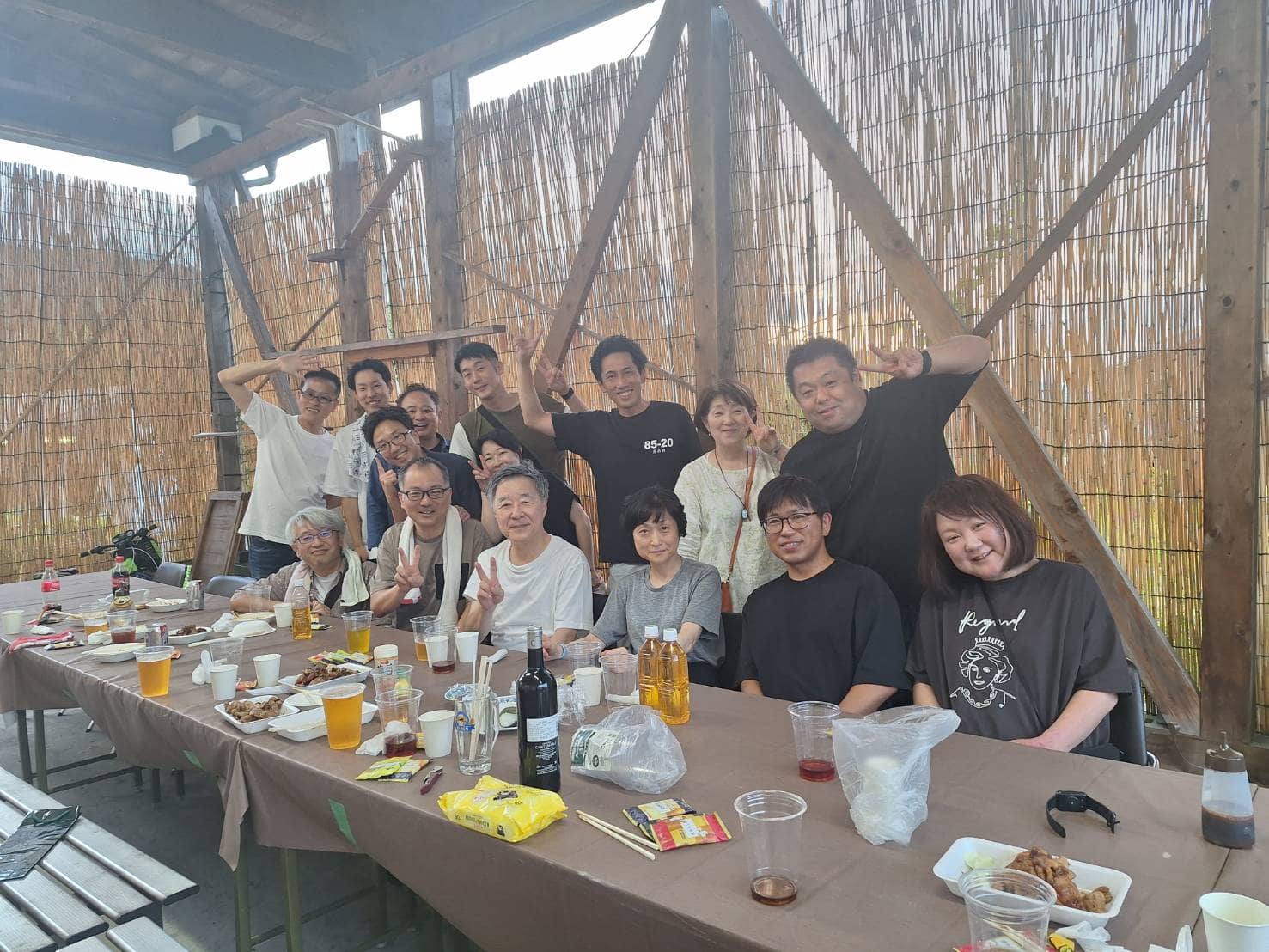 明るいうちから飲むお酒はおいしいですし、いつもと違うメンバーなので違った話もたくさんありますし、普段仕事やzoomでしか話したことのない皆様でしたので、昔の話やら、プライベートな話。もちろんサン・ビジョンの今とこれから いろんな話で盛り上がりました。 写真は明るい時間ですが、このあと深夜まで宴は続きます。