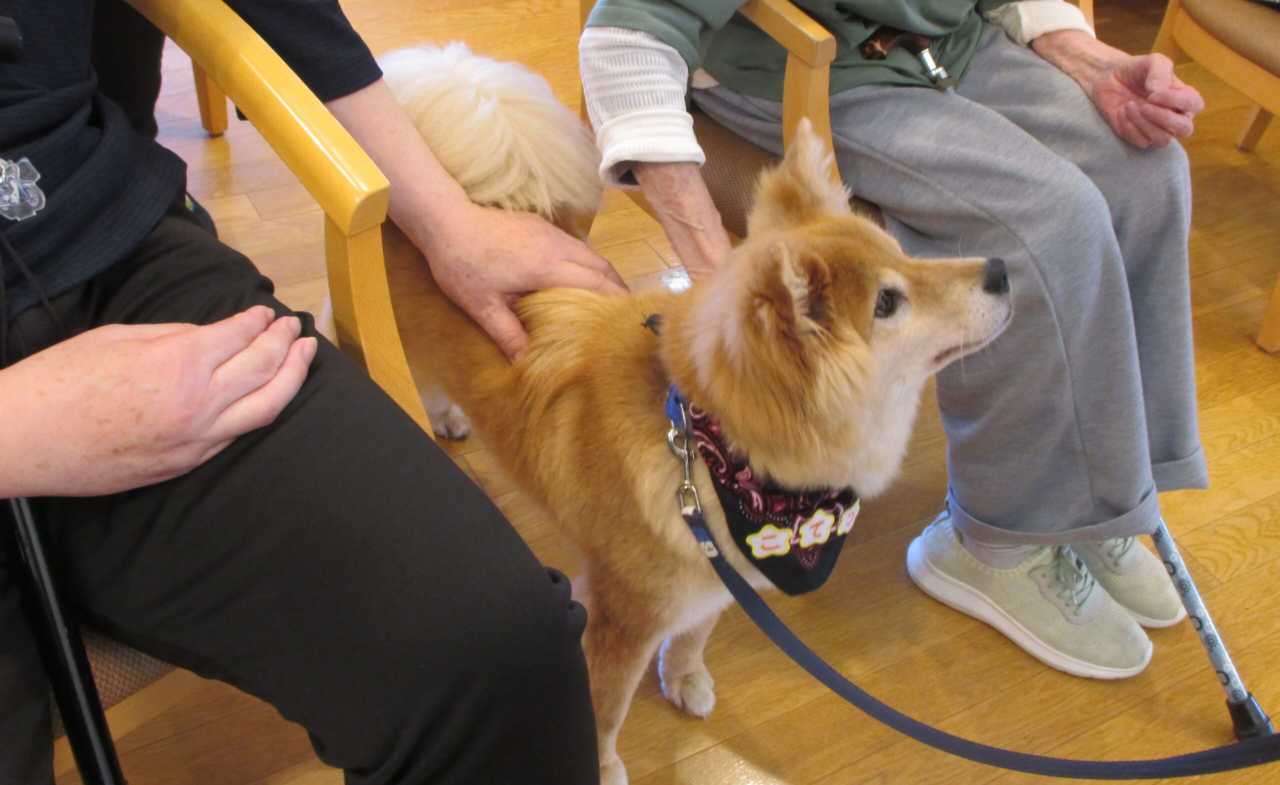 動物ふれあい訪問が実現。犬とウサギが施設に来てくれました。