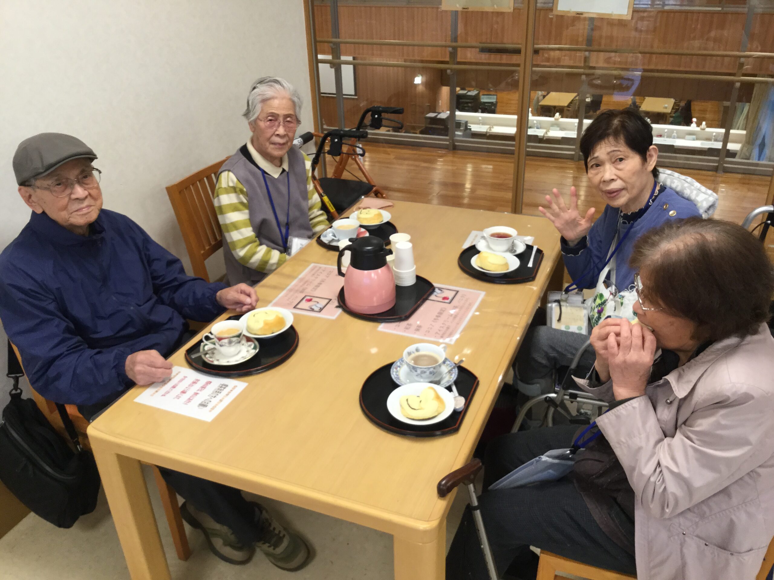 おやつには、午前中に訪れた「くるみのパン屋さん」の名物「くるみんパン」をご用意しました。見た目も可愛く、味も抜群!皆様ペロリと完食されました。