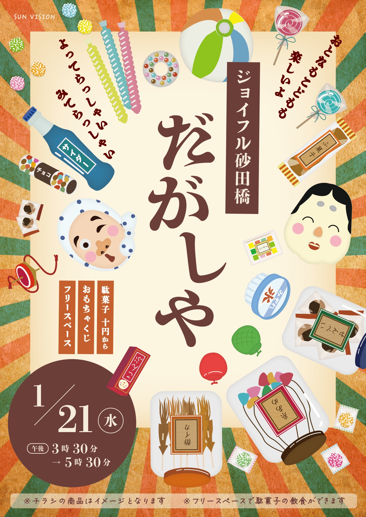 4. 【ジョイフル砂田橋】1月21日(水)駄菓子屋開催のお知らせ☆彡