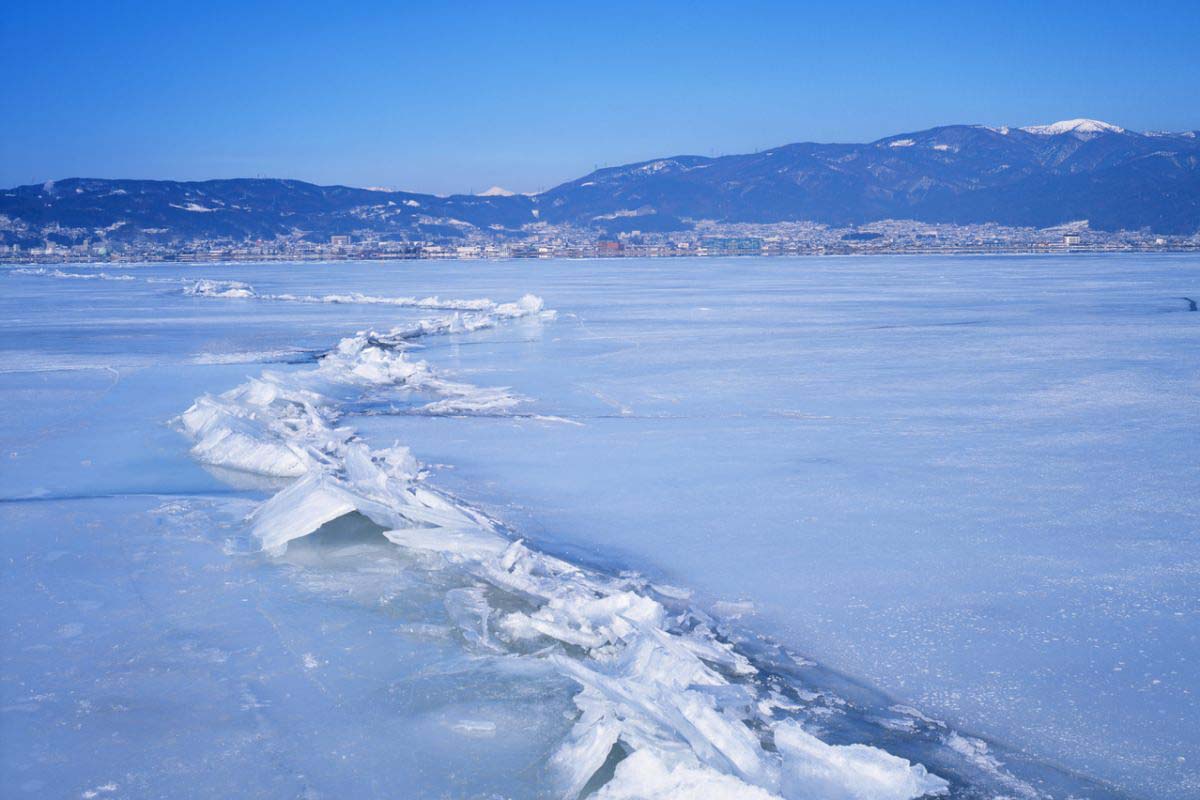 昔から、「神様が湖を渡った跡」と言われ、諏訪の冬を代表する風景のひとつとして親しまれてきました。