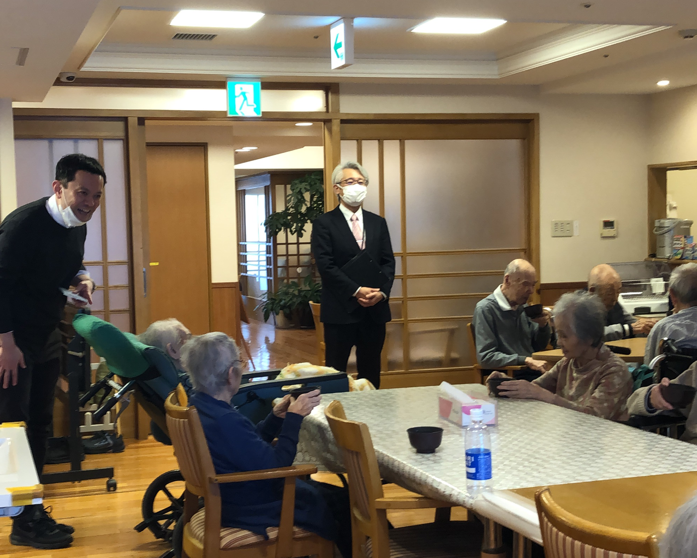 新年会では林施設長よりご挨拶をいただき、利用様の方々は真剣に耳を傾けられていました。