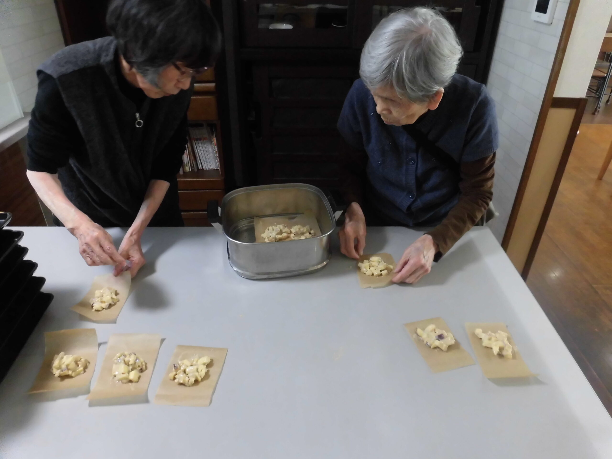 さつまいもの皮をむいたり角切りにしたりと、昔から馴染みのある作業に「懐かしいねぇ」と笑顔がこぼれ、調理の時間そのものがとても温かいひとときになりました。 蒸しあがった鬼まんじゅうを見て「昔よく作ったよ」と話してくださる方もいて、食べる前からほっこりした空気に包まれました。