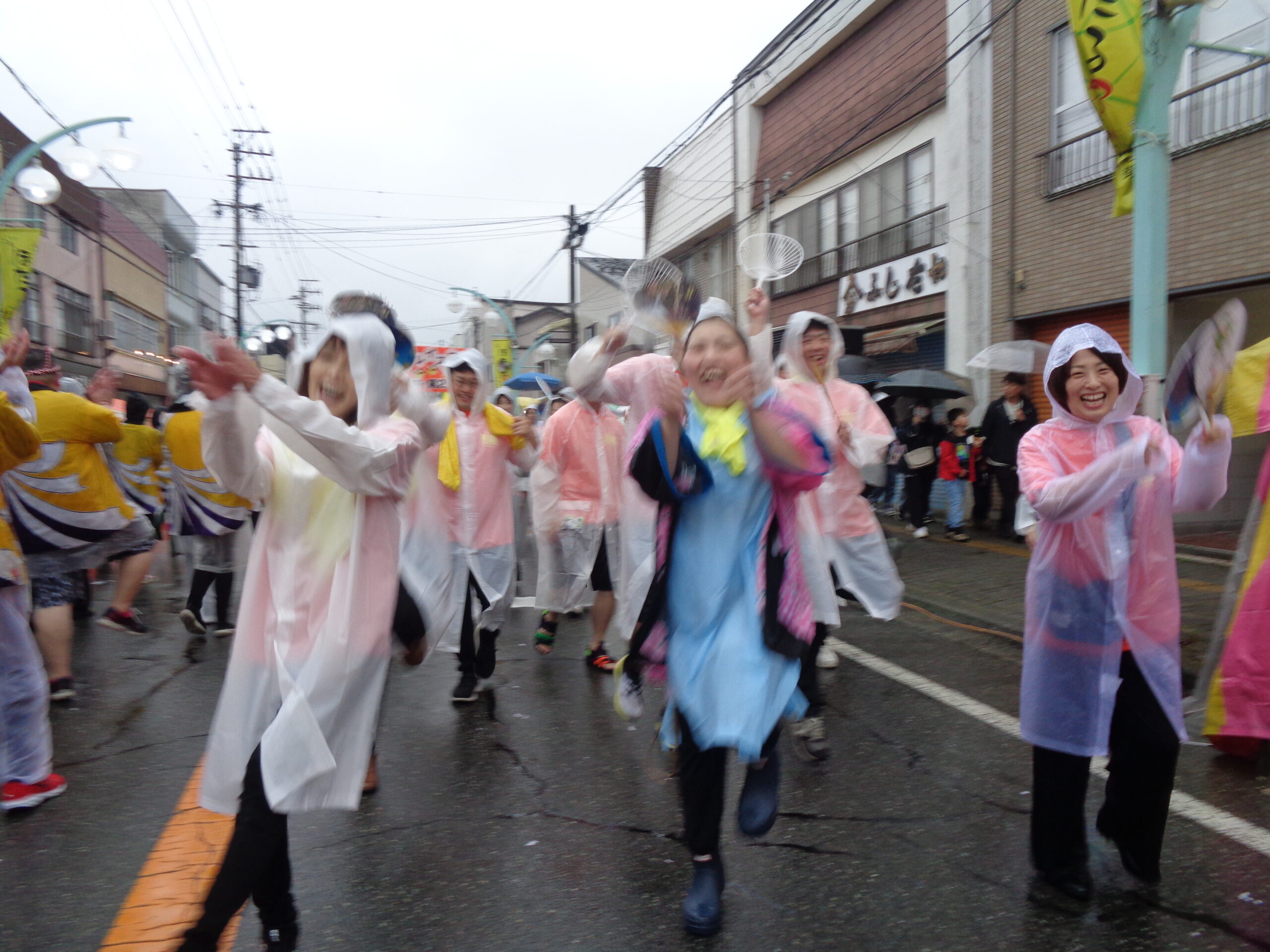 雨合羽やポンチョを羽織っての参加になりました。