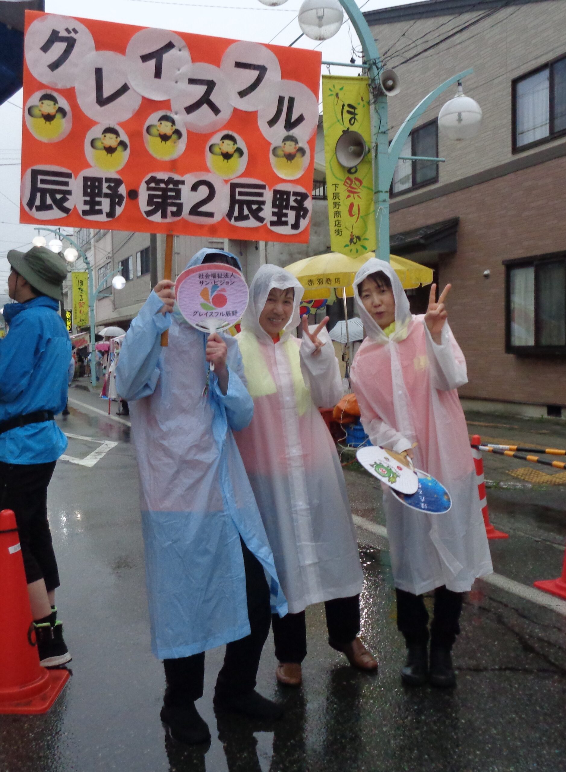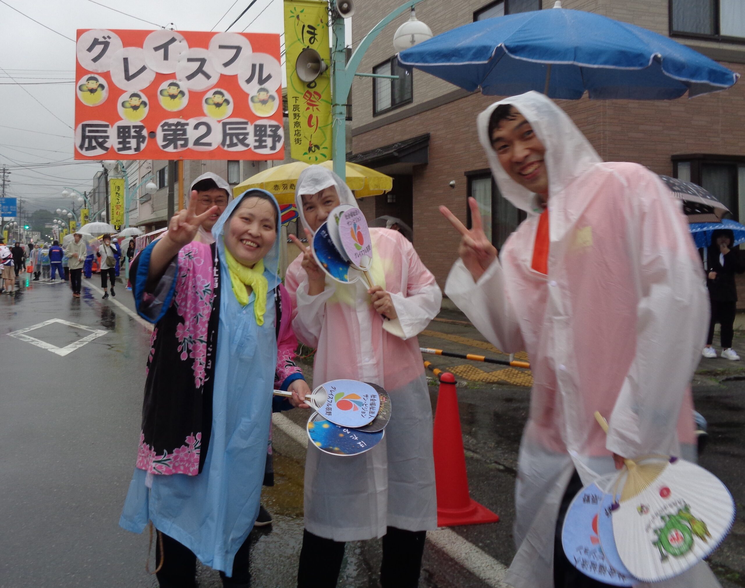辰野町ならではの最大イベント「第77回信州たつの ほたる祭り」の一環で行われる🎵たつの ぴっかり踊り🎵に、グレイスフル辰野/第2グレイスフル辰野職員で、看板と手作り団扇を持って参加をしました。