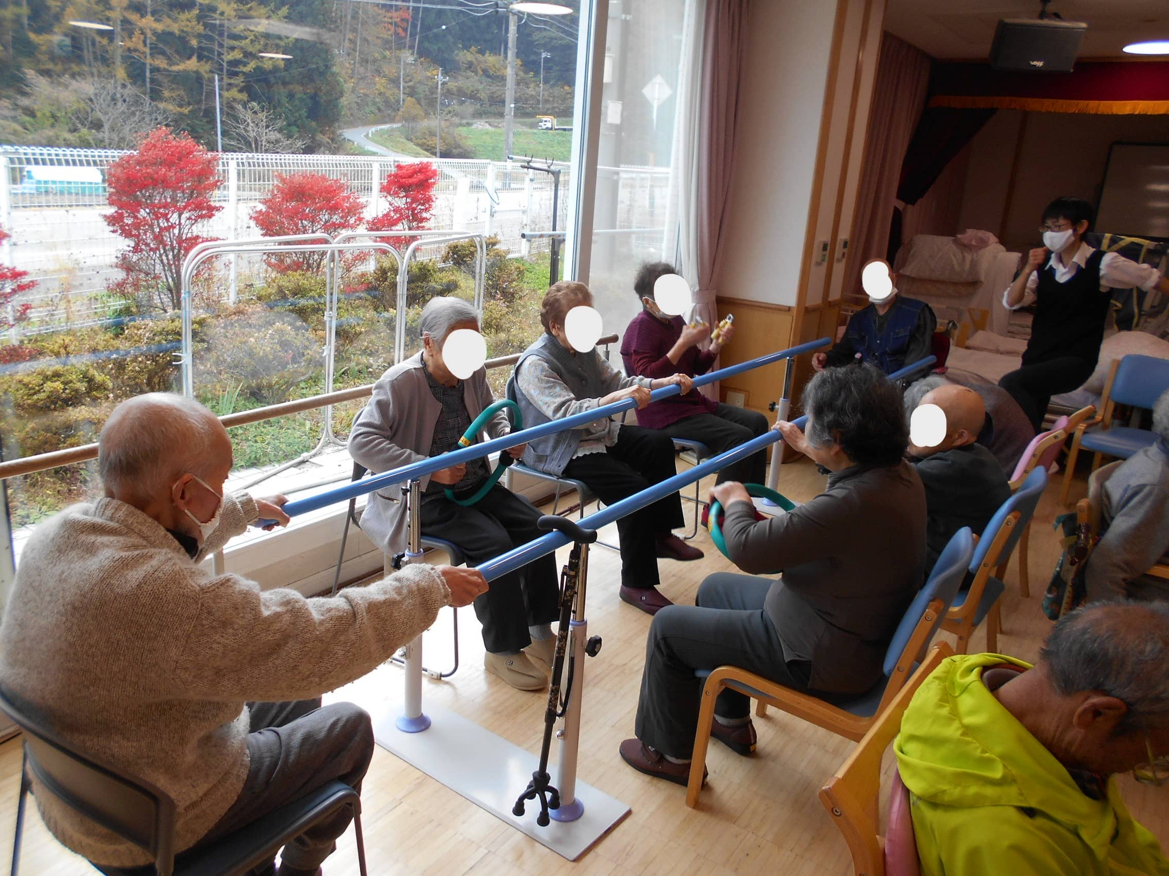 1秒1回のペースで30回行い、次の方へ運動器具を回す方法で行っています。なので、30秒×8名=4分間は休まずに運動を行う事になります。真剣にやると結構、疲れます(その日の調子に合わせて、優しく行っても大丈夫です)。