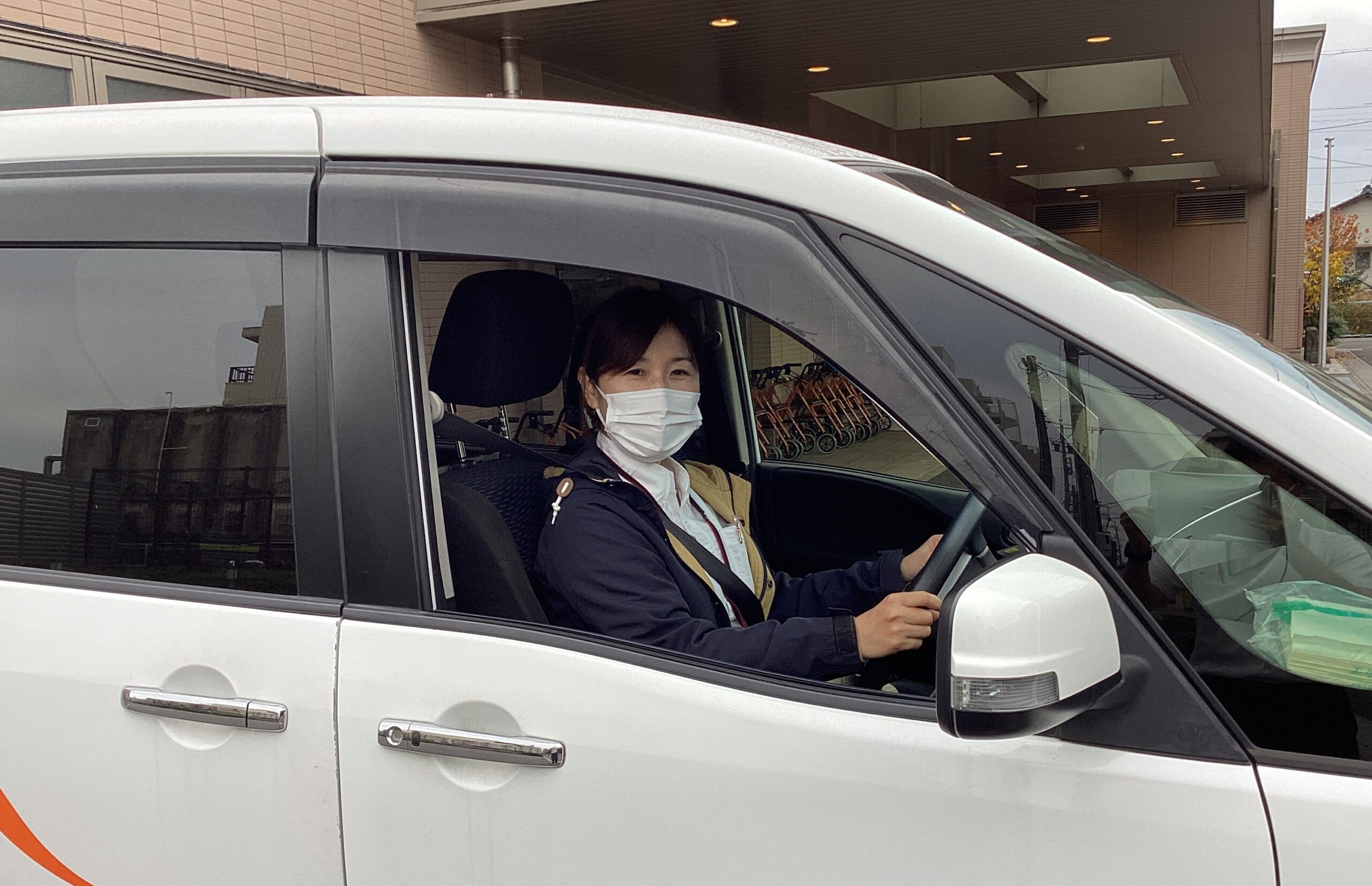 【介護職員のKさん 送迎確認、朝のお迎えに行かれるときの様子です】