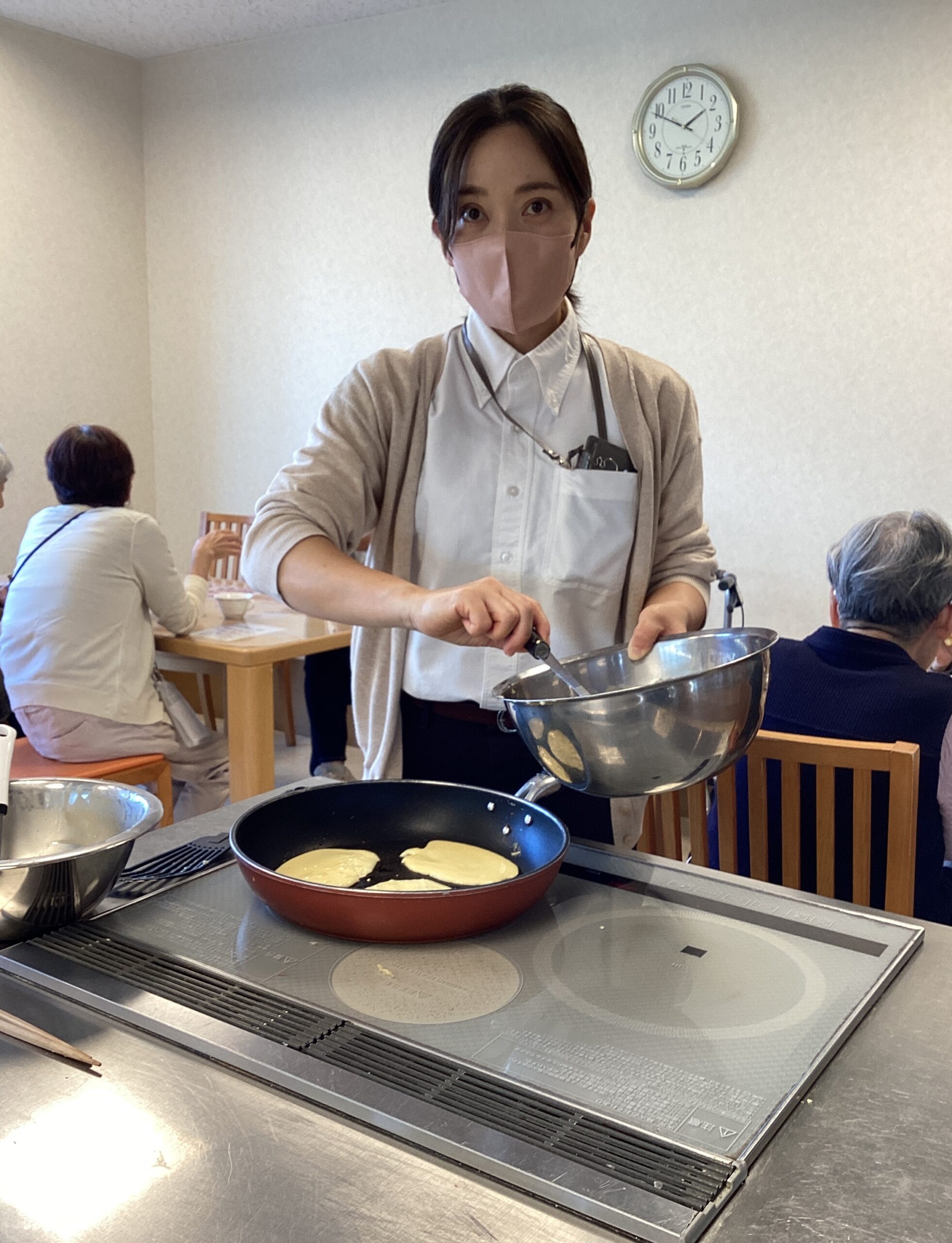 【介護職員のTさん 料理教室でおやつづくりをしたり、利用者様のアセスメントを記録しています】