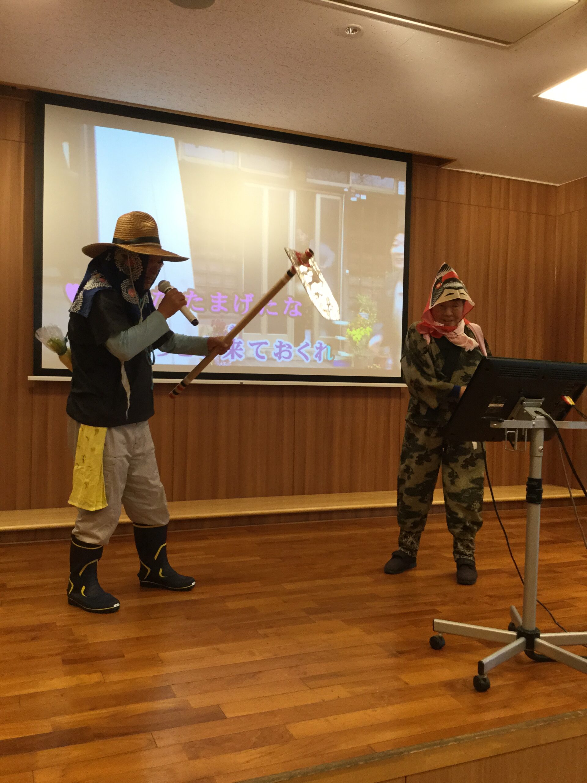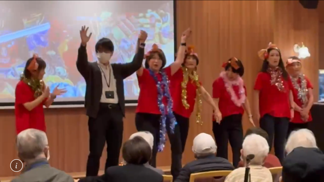 職員もステージに立ち、利用者様とデュエットをしたり、振り付けを交えて